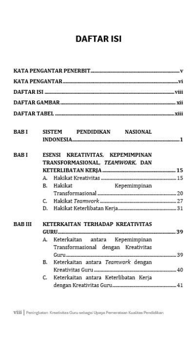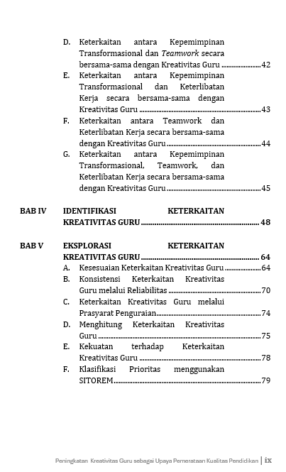 Berikut Daftar Isi Buku Keguruan dan Ilmu Pendidikan berjudul Buku Peningkatan Kreativitas Guru Sebagai Upaya Pemerataan Kualitas Pendidikan, diantaranya: