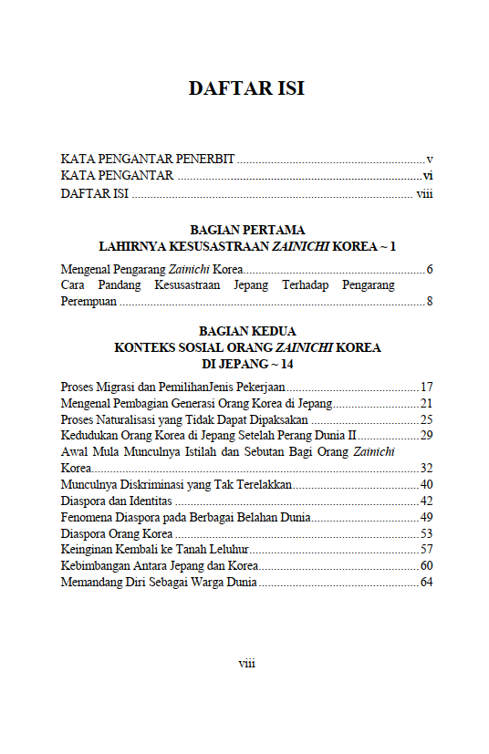 Berikut Daftar Isi Buku Bahasa dan Sastra yang berjudul Buku Perempuan Zainichi Korea Narasi Feminis dan Diaspora dalam Novel Karya Lee Yanji, diantaranya:
