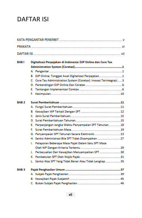 Berikut Daftar Isi Buku Perpajakan yang berjudul Buku Perpajakan Indonesia, diantaranya:
