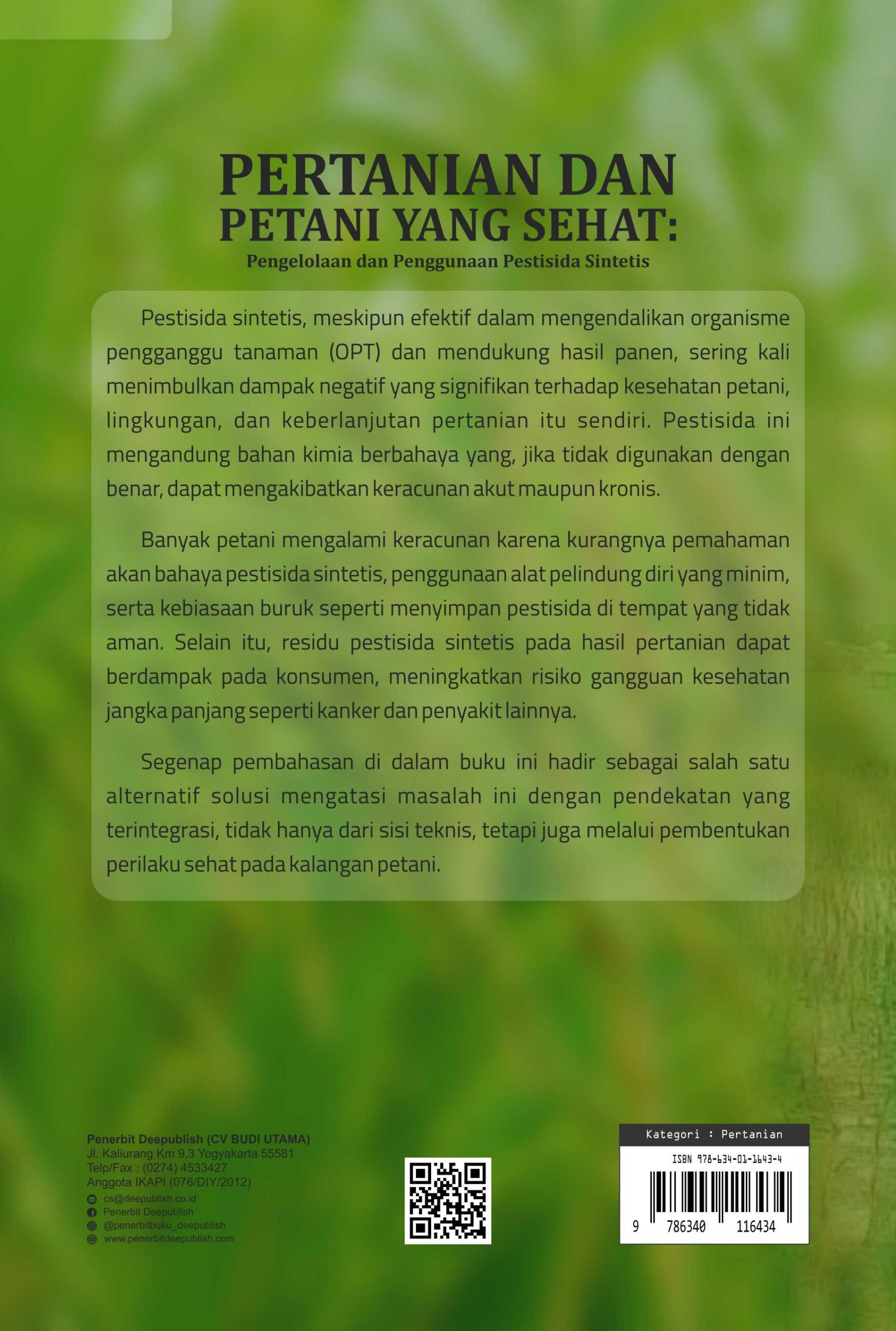 Buku Pertanian dan Petani yang Sehat: Pengelolaan dan Penggunaan Pestisida Sintetis diterbitkan oleh Penerbit Buku Pendidikan Deepublish.
