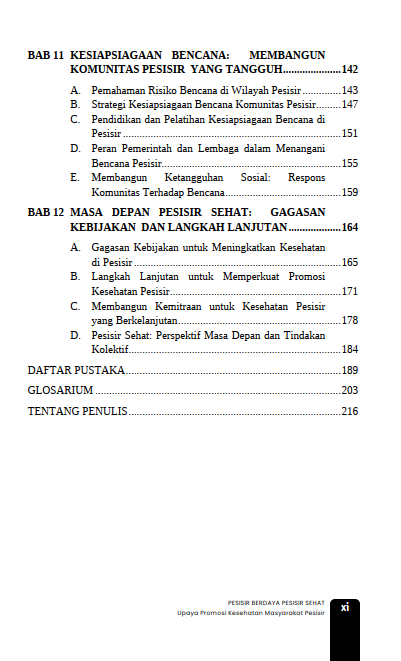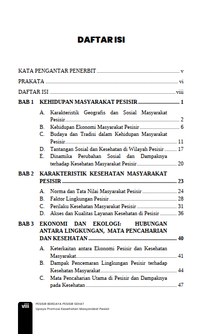 Berikut Daftar Isi Buku Kesehatan yang berjudul Buku Pesisir Berdaya Pesisir Sehat Upaya Promosi Kesehatan Masyarakat Pesisir, diantaranya: