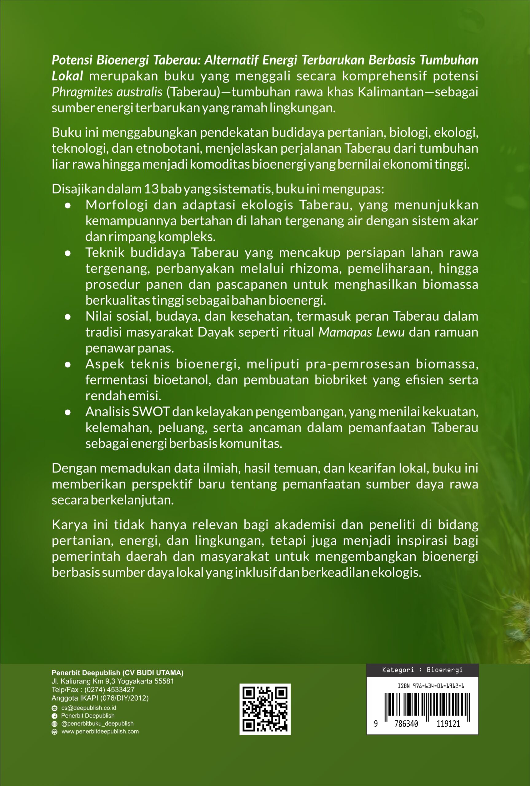 Buku Potensi Bioenergi Taberau: Alternatif Energi Terbarukan Berbasis Tumbuhan Lokal diterbitkan oleh Penerbit Buku Pendidikan Deepublish.