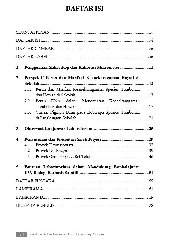 Berikut Daftar Isi Buku Biologi yang berjudul Buku Praktikum Biologi Umum untuk Kurikulum Deep Learning, diantaranya: