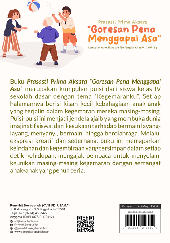 Buku Prasasti Prima Aksara “Goresan Pena Menggapai Asa” diterbitkan oleh Penerbit Buku Pendidikan Deepublish.
