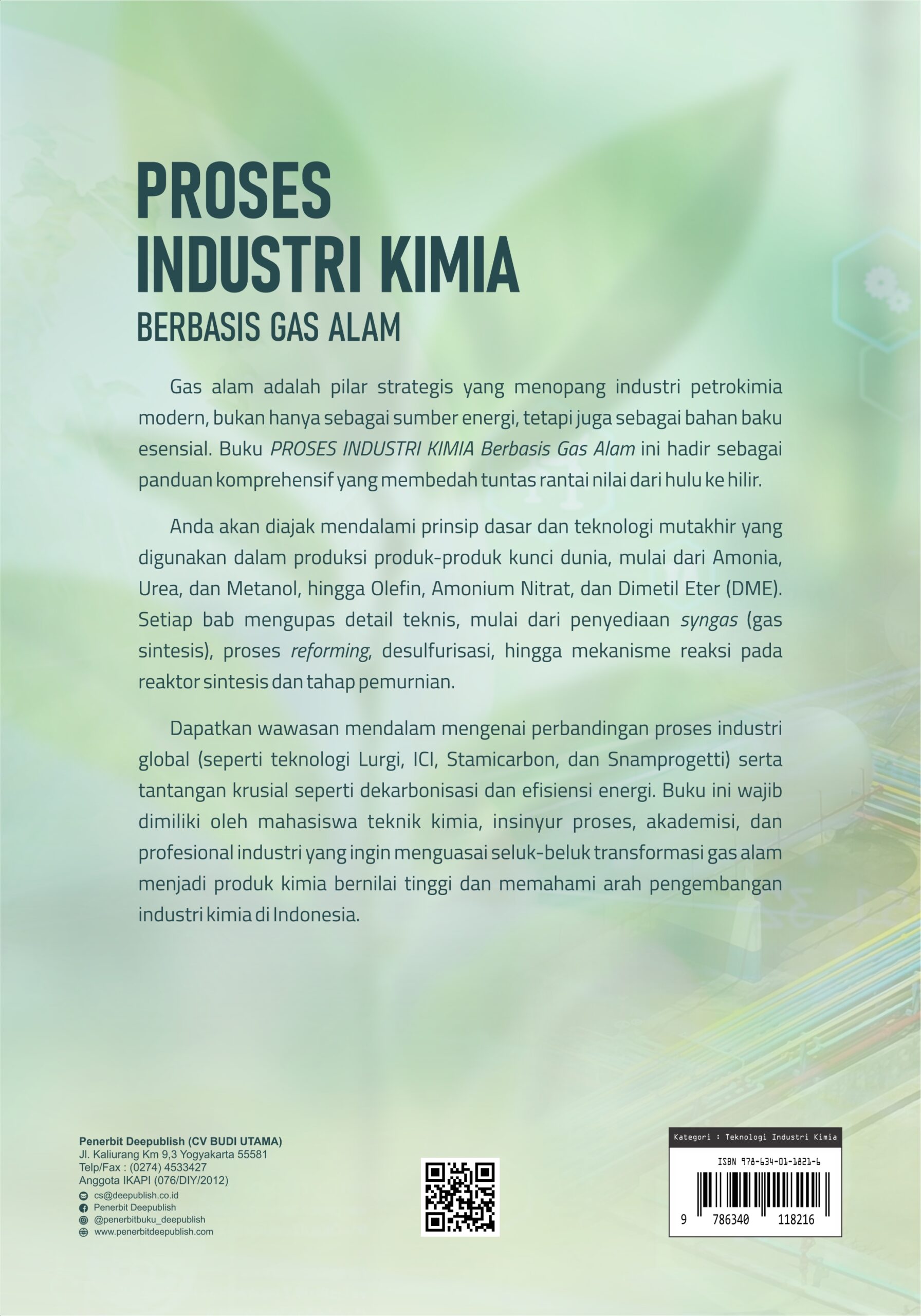 Buku Proses Industri Kimia Berbasis Gas Alam diterbitkan oleh Penerbit Buku Pendidikan Deepublish.