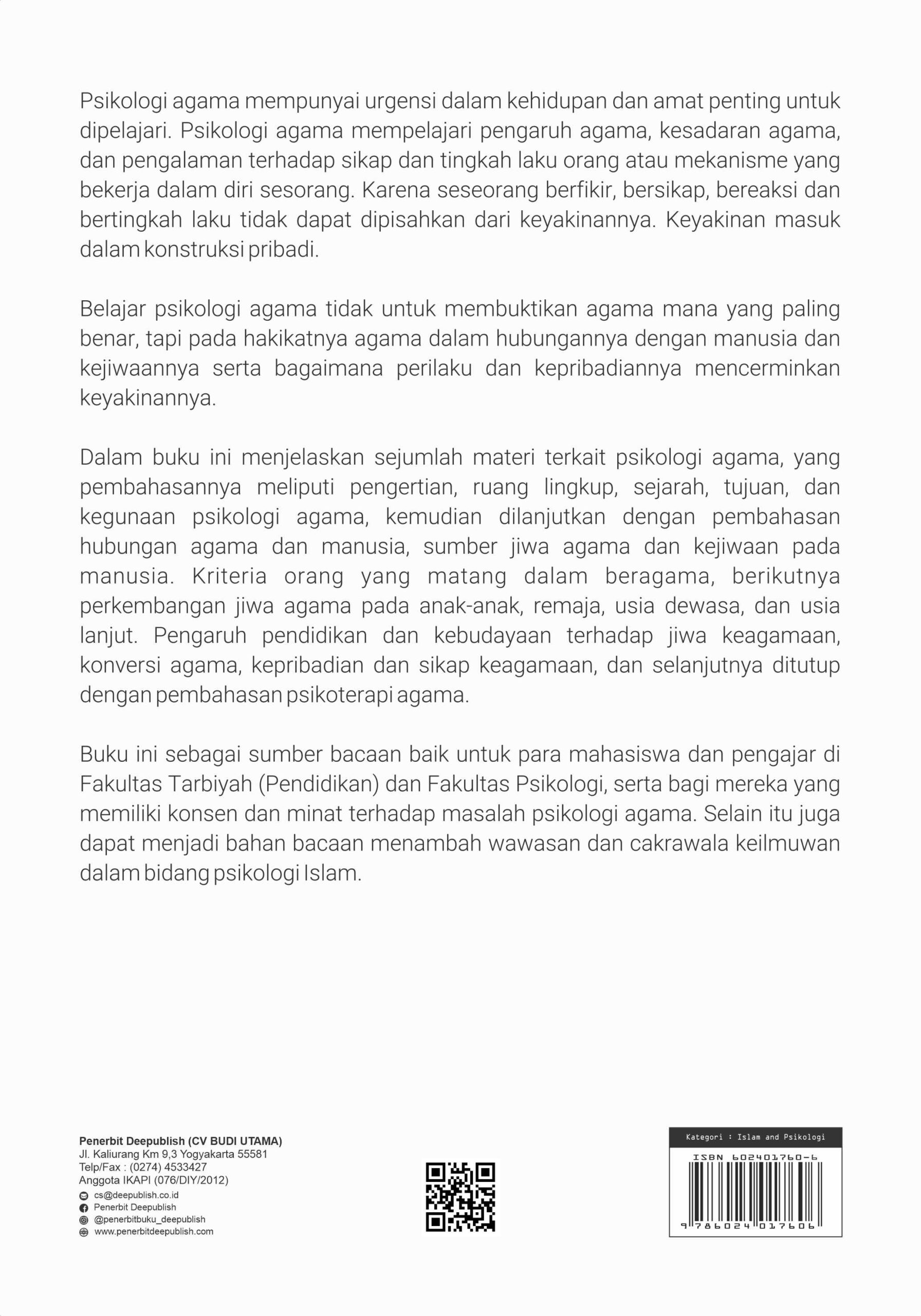 Buku Psikologi Agama: Memahami Dan Menjadikan Psikologi Sebagai Peneguh Jati Diri diterbitkan oleh Penerbit Buku Pendidikan Deepublish.