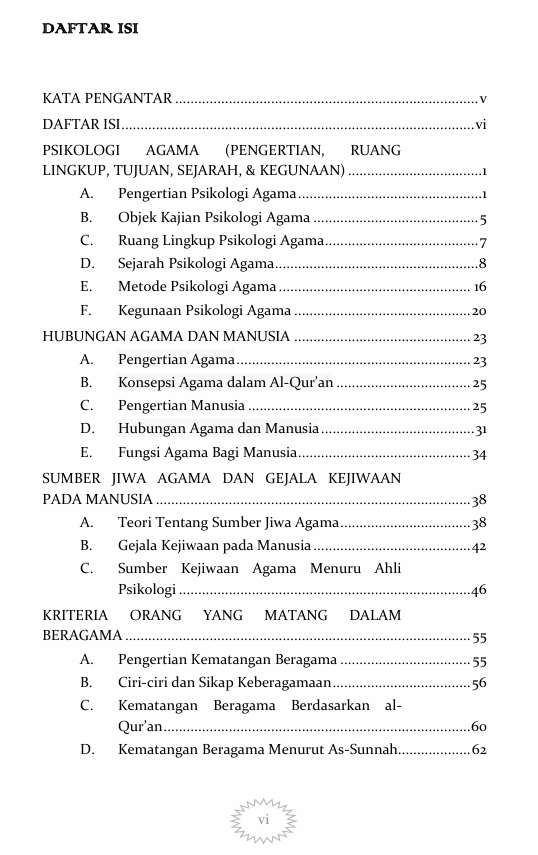 Berikut Daftar Isi Buku Agama Islam yang berjudul Buku Psikologi Agama: Memahami Dan Menjadikan Psikologi Sebagai Peneguh Jati Diri , diantaranya: