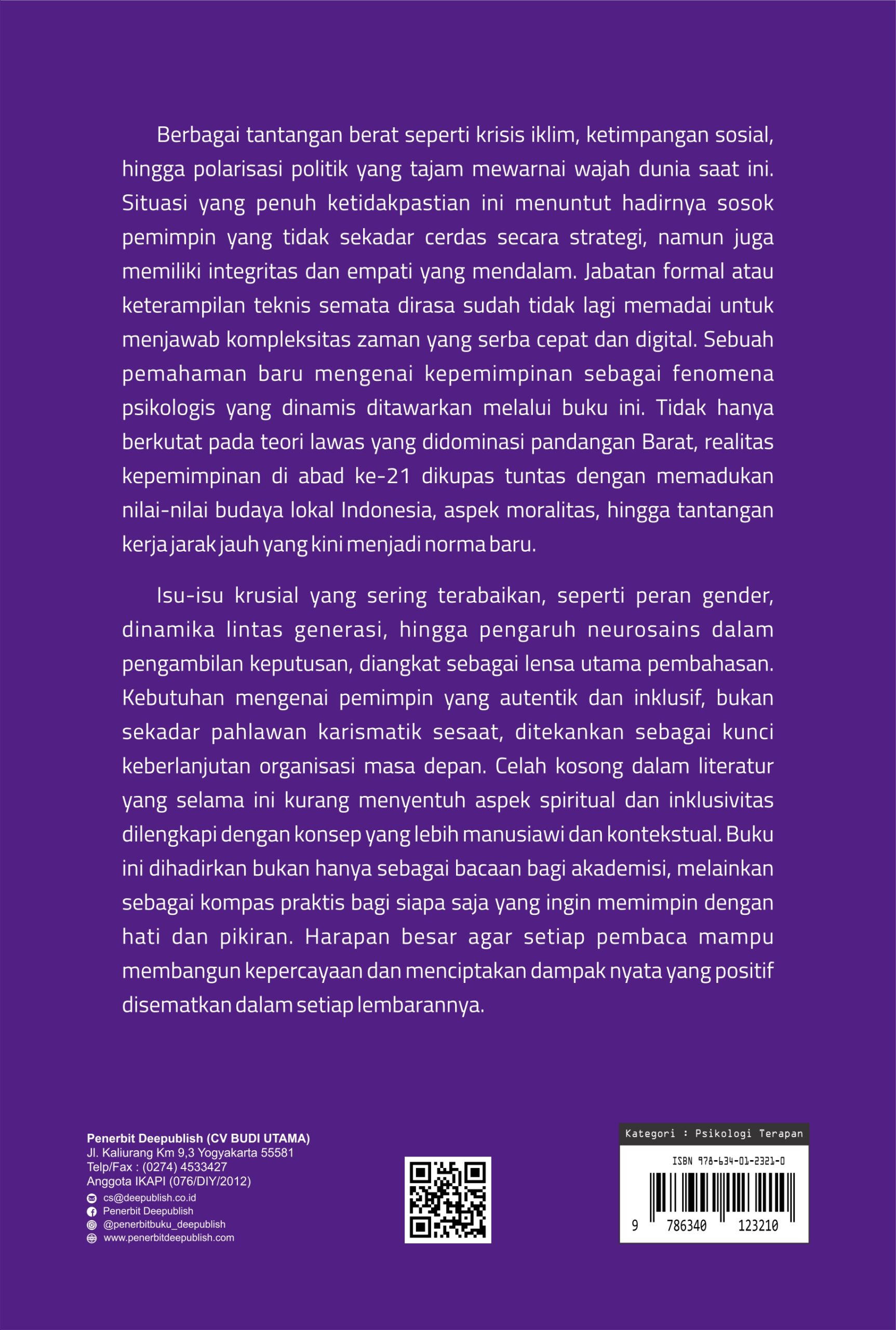 Buku Psikologi Kepemimpinan Teori dan Praktik dalam Dinamika Global diterbitkan oleh Penerbit Buku Pendidikan Deepublish.