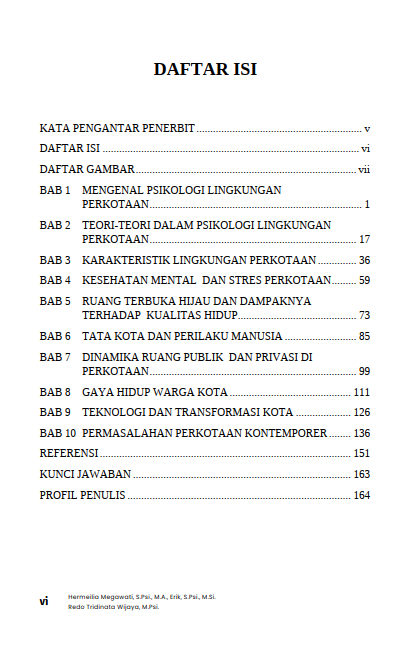 Buku ini membahas hubungan timbal balik antara manusia dan lanskap kota secara menyeluruh. Berbagai elemen perkotaan seperti taman kota, ruang terbuka, kawasan permukiman, hingga pusat aktivitas masyarakat dipaparkan sebagai bagian dari lingkungan yang memiliki dampak psikologis bagi penghuninya. Melalui pembahasan yang sistematis dan mudah dipahami, pembaca diajak melihat kota bukan hanya sebagai ruang fisik, tetapi juga sebagai ruang pengalaman yang membentuk kesejahteraan manusia.