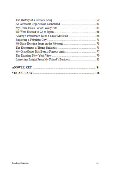 Berikut Daftar Isi Buku Bahasa Inggris yang berjudul Buku Reading Exercise, diantaranya: