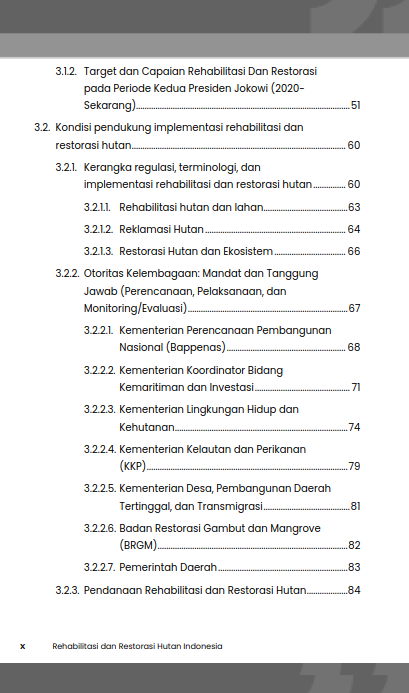 Buku Rehabilitasi Dan Restorasi Hutan Indonesia: Dilema Lahan, Solusi Iklim, Dan Optimalisasi Kebijakan Kehutanan