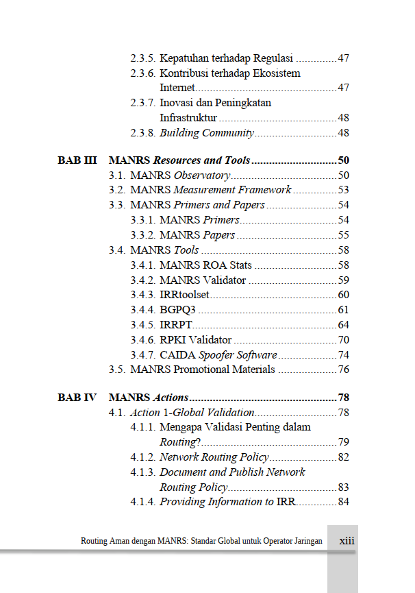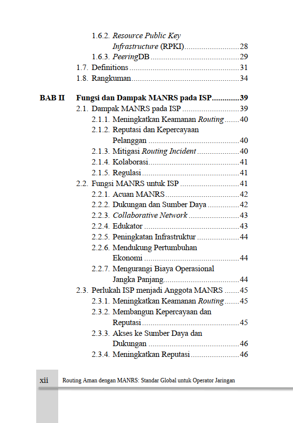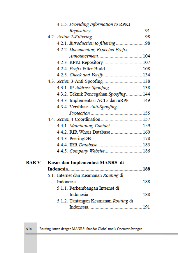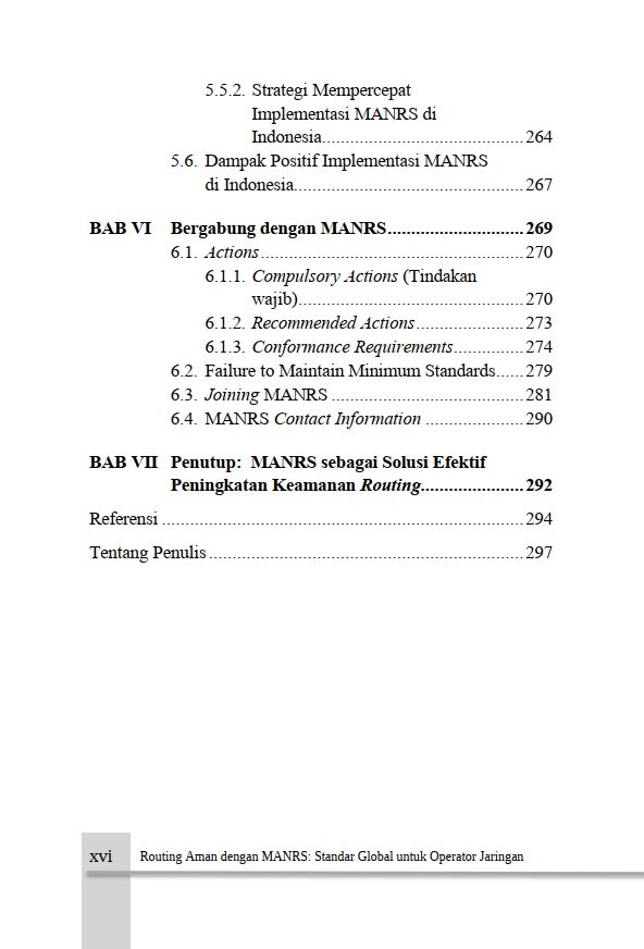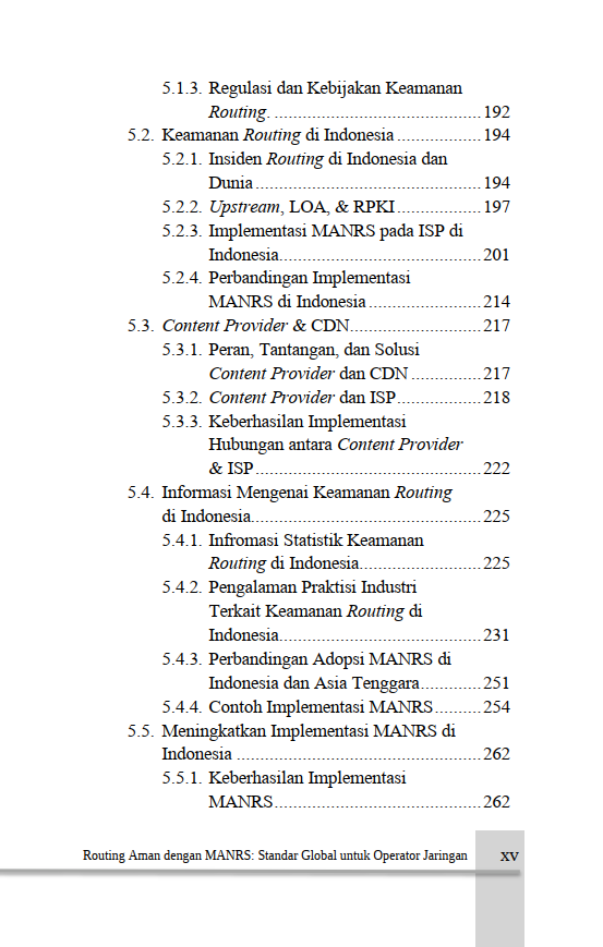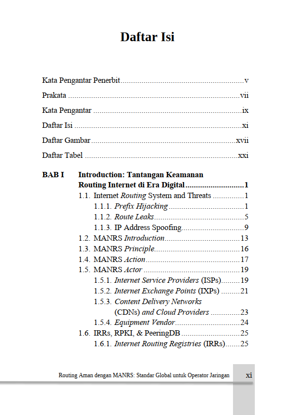 Berikut Daftar Isi Buku Ilmu Komputer yang berjudul Buku Routing Aman dengan MANRS: Standar Global untuk Operator Jaringan, diantaranya: