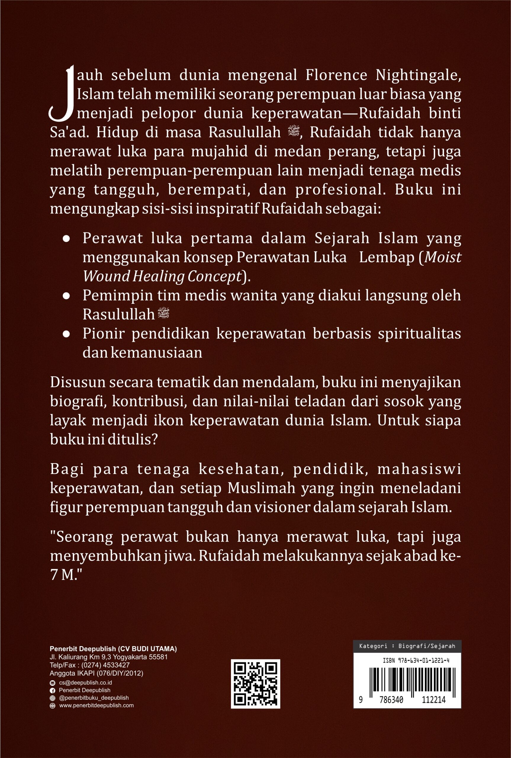 Buku Rufaidah binti Sa’ad: Sang Maestro Perawat Luka Pertama dalam Keperawatan Islam (Menguak Jejak Perintis Keperawatan Islam dari Medan Perang ke Pusat Peradaban Perawatan Luka Dunia) diterbitkan oleh Penerbit Buku Pendidikan Deepublish.