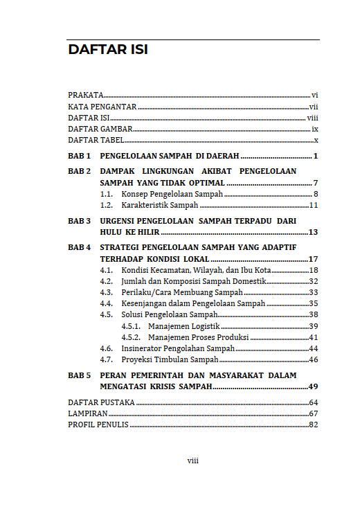 Berikut Daftar Isi Buku Lingkungan yang berjudul Buku Sampah, Kota, dan Kita: Membangun Lingkungan yang Lebih Bersih, diantaranya:
