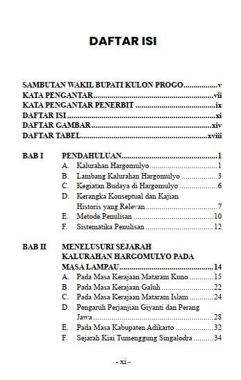 Buku ini diterbitkan guna mengetahui Sejarah dan profil Kalurahan Budaya Hargomulyo, serta upaya-upaya untuk menyongsong Indonesia Emas 2045. Buku ini berisi perkembangan kewilayahan sejak Kerajaan Mataram Kuno, Kerajaan Galuh, Kerajaan Mataram Islam, juga era setelah Perjanjian Giyanti 1755, di mana wilayah Hargomulyo, Pripih saat itu merupakan bagian dari Kasultanan Yogyakarta di bawah Kabupatan Nanggulan (Jatingarang) yang saat itu di masa Kiai Tumenggung Singalodra.