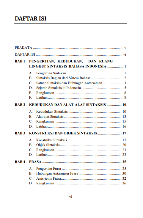 Berikut Daftar Isi Buku Bahasa dan Sastra yang berjudul Buku Sintaksis Bahasa Indonesia: Konsep Dasar dan Struktur Kalimat, diantaranya: