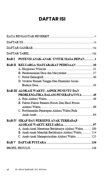 Berikut Daftar Isi Buku Sosial Budaya yang berjudul Buku Sistem Sosio-Kultural Alokasi Waktu Anak dalam Keluarga Jawa, diantaranya:
