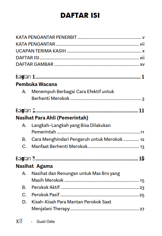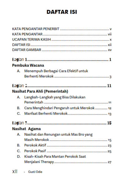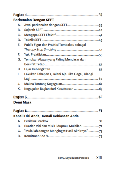 Berikut Daftar Isi Buku Motivasi yang berjudul Buku Sorry, Saya Bukan Perokok Menang Melawan Kebiasaan Merokok, Tanpa Dipaksa, diantaranya:
