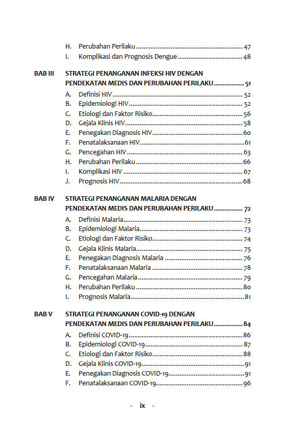 Berikut Daftar Isi Buku Kedokteran yang berjudul Buku Strategi Penanganan Penyakit Infeksi dengan Pendekatan Medis dan Perubahan Perilaku, diantaranya: