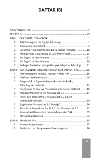 Berikut Daftar Isi Buku Manajemen yang berjudul Buku Strategi Pengawasan Dalam Mewujudkan Akuntabilitas Kinerja Di Era Digital, diantaranya: