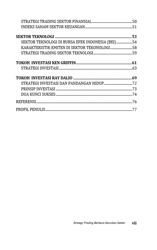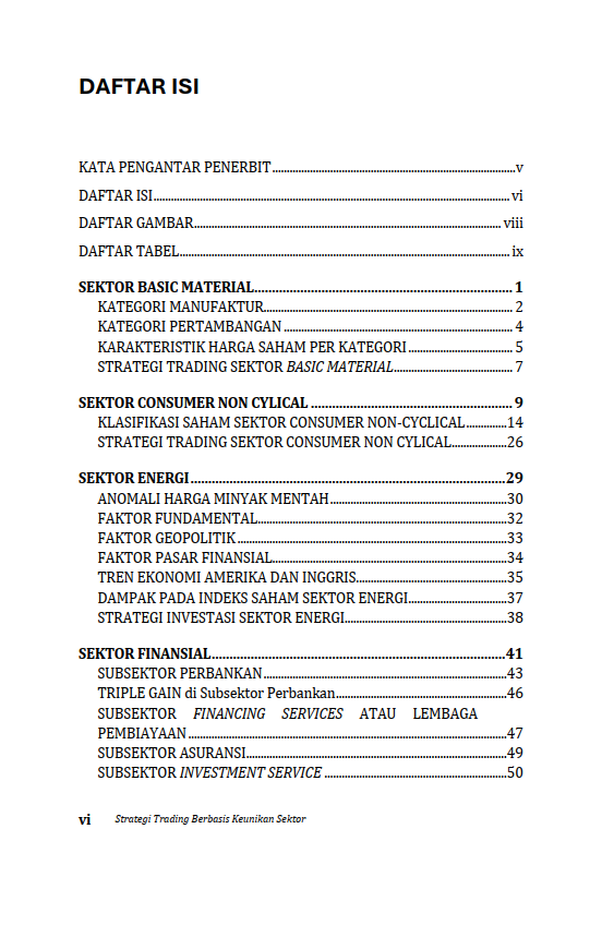 Berikut Daftar Isi Buku Akuntansi yang berjudul Buku Strategi Trading Berbasis Keunikan Sektor, diantaranya: