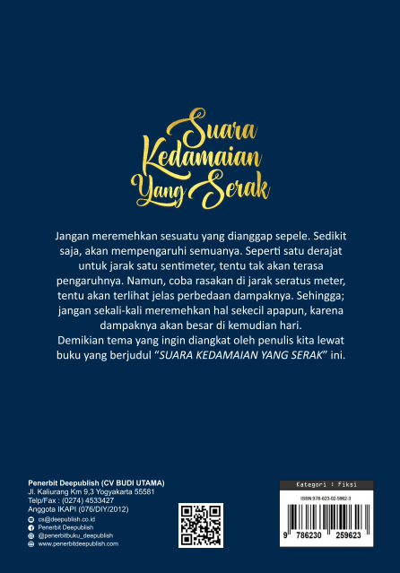 Buku Suara Kedamaian yang Serak ini diterbitkan oleh Penerbit Buku Pendidikan Deepublish.