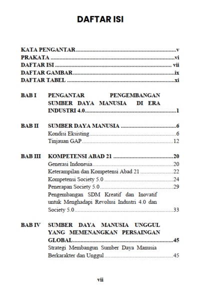 Berikut Daftar Isi Buku Manajemen berjudul Buku Sumber Daya Manusia Unggul dalam Memenangkan Persaingan Global, diantaranya: