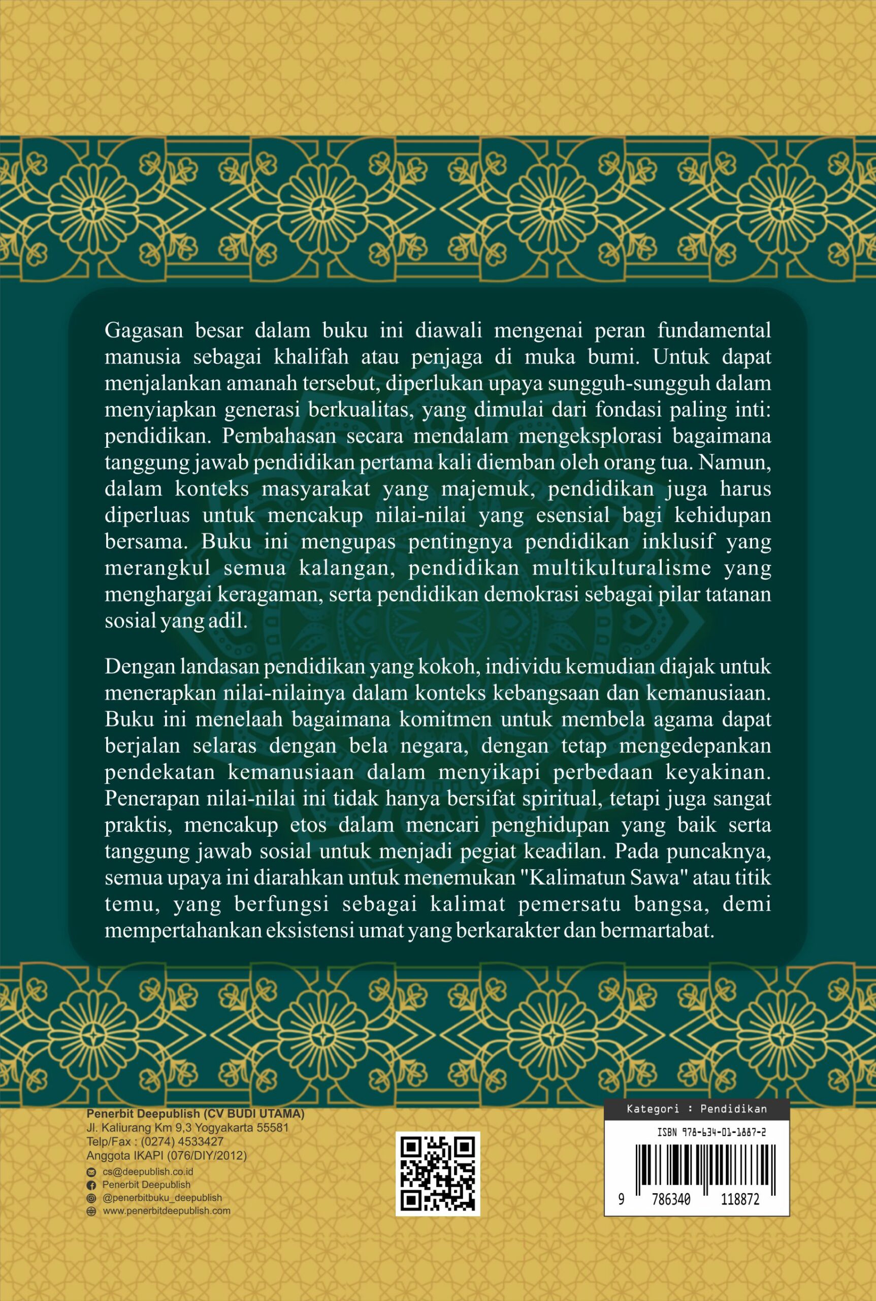 Dengan landasan pendidikan yang kokoh, individu kemudian diajak untuk menerapkan nilai-nilainya dalam konteks kebangsaan dan kemanusiaan. Buku ini menelaah bagaimana komitmen untuk membela agama dapat berjalan selaras dengan bela negara, dengan tetap mengedepankan pendekatan kemanusiaan dalam menyikapi perbedaan keyakinan. Penerapan nilai-nilai ini tidak hanya bersifat spiritual, tetapi juga sangat praktis, mencakup etos dalam mencari penghidupan yang baik serta tanggung jawab sosial untuk menjadi pegiat keadilan. Pada puncaknya, semua upaya ini diarahkan untuk menemukan “Kalimatun Sawa” atau titik temu, yang berfungsi sebagai kalimat pemersatu bangsa, demi mempertahankan eksistensi umat yang berkarakter dan bermartabat. Buku Tafsir Tematik Pendidikan ditujukan bagi para pendidik, orang tua, mahasiswa, dan masyarakat umum yang ingin mendalami pendidikan Islam secara holistik. Melalui pendekatan tematik ini, pembaca dapat menemukan inspirasi untuk membangun sistem pendidikan yang adil, berkualitas, dan berlandaskan nilai-nilai tauhid.