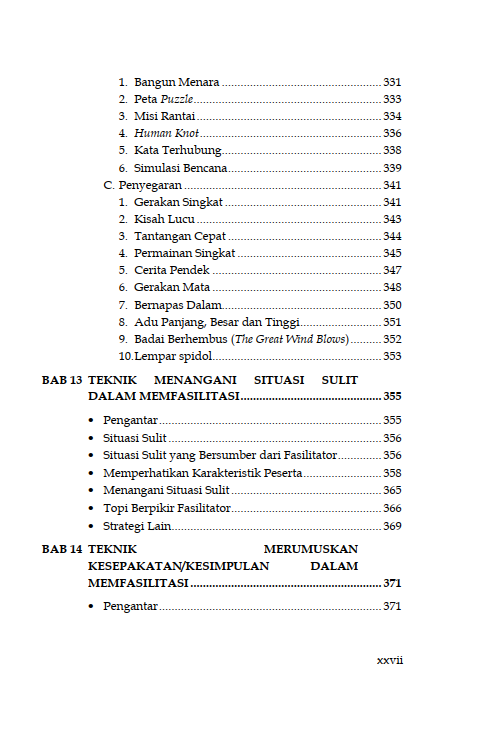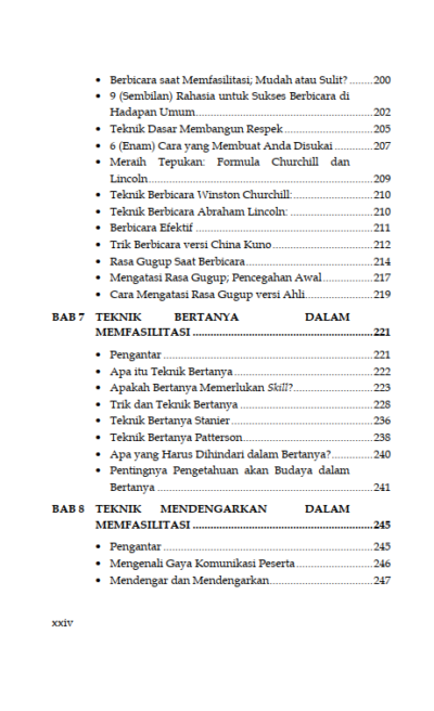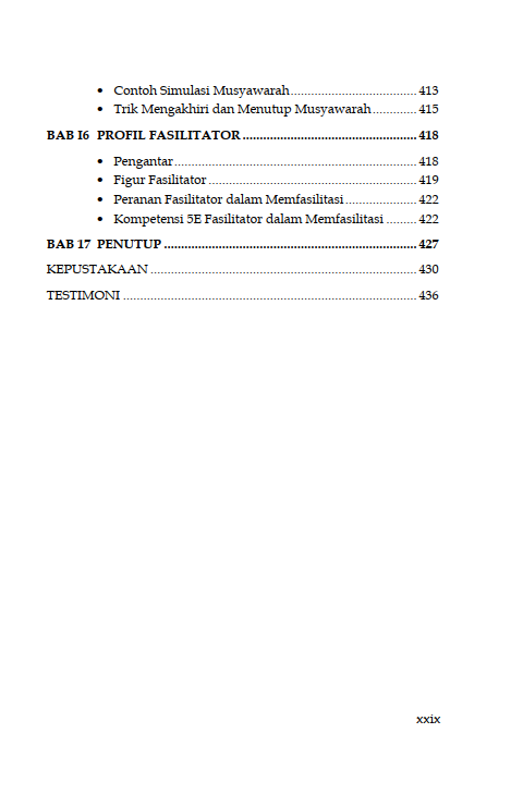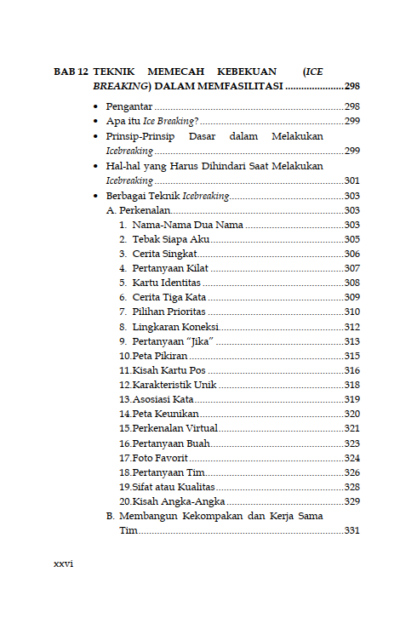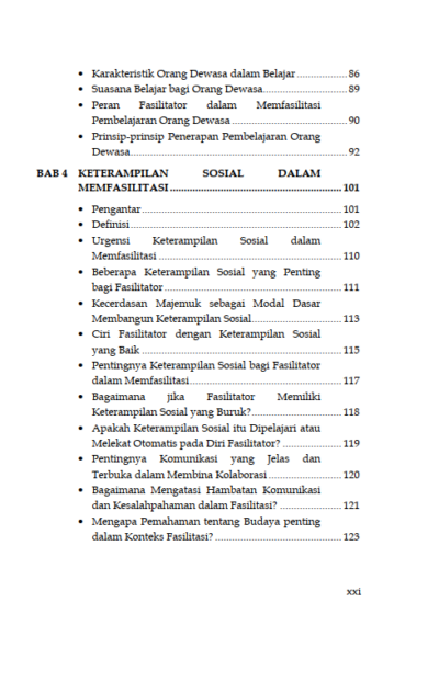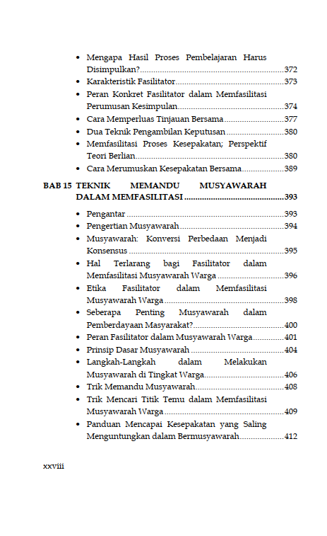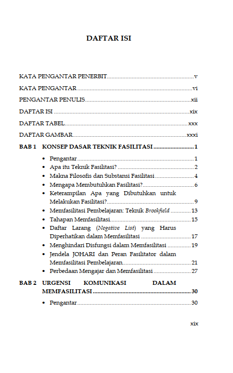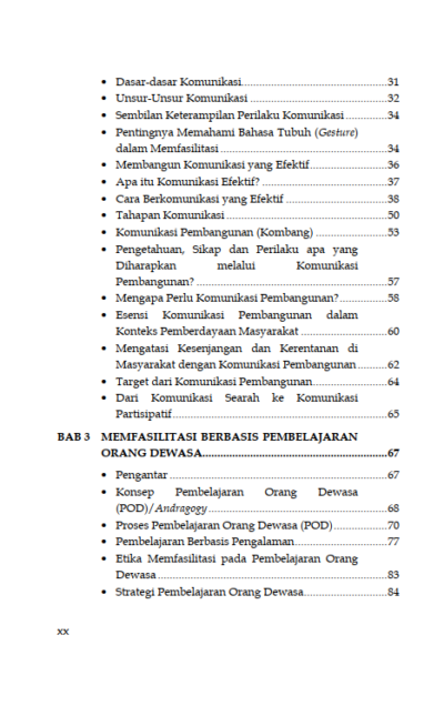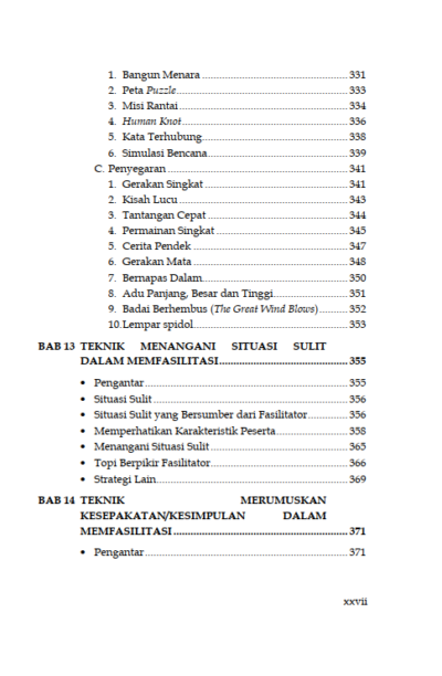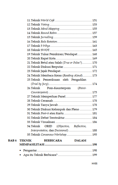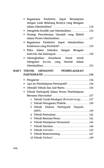 Sinopsis Buku Teknik Fasilitasi Panduan Memfasilitasi Pembelajaran Partisipatif dalam Pemberdayaan dan Pengembangan Masyarakat Buku Teknik Fasilitasi Panduan Memfasilitasi Pembelajaran Partisipatif dalam Pemberdayaan dan Pengembangan Masyarakat Buku Sosiologi yang berjudul Buku Teknik Fasilitasi Panduan Memfasilitasi Pembelajaran Partisipatif dalam Pemberdayaan dan Pengembangan Masyarakat merupakan karya Sakaruddin Mandjarreki. Buku ini mengajak pembaca menelusuri dan menggali kedalaman serta kekayaan praktik fasilitasi, sebuah keterampilan yang tak hanya esensial tetapi juga transformasional, baik bagi individu maupun kelompok. Di setiap bab, pembaca diajak untuk memahami bahwa menjadi fasilitator bukanlah tentang menjadi pusat perhatian, melainkan tentang bagaimana menjadi jembatan yang memungkinkan setiap suara untuk didengar, setiap gagasan untuk dihargai, dan setiap potensi untuk dikembangkan. Dari dasar-dasar komunikasi yang efektif hingga teknik-teknik lanjutan dalam mengelola dinamika kelompok, pembaca diajak untuk menyelami seni dan sains fasilitasi dengan hati dan pikiran yang terbuka. Semoga buku ini tidak hanya menjadi panduan bagi pembaca dalam mengasah keterampilan fasilitasi tetapi juga menjadi sumber inspirasi untuk terus berkontribusi dalam menciptakan ruang-ruang dialog yang produktif, inklusif, dan penuh makna. Berikut Daftar Isi Buku Sosiologi yang berjudul Buku Teknik Fasilitasi Panduan Memfasilitasi Pembelajaran Partisipatif dalam Pemberdayaan dan Pengembangan Masyarakat, diantaranya: