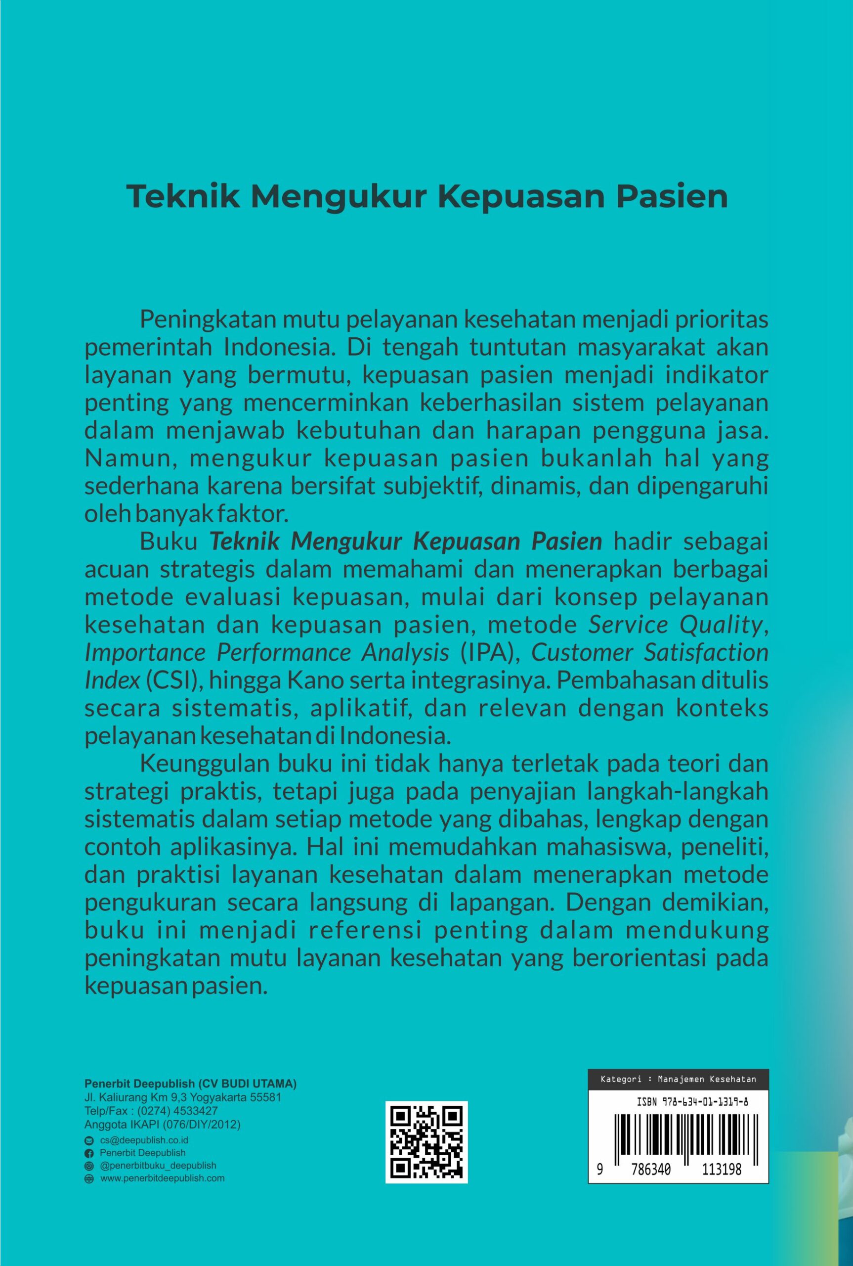 Buku Teknik Mengukur Kepuasan Pasien diterbitkan oleh Penerbit Buku Pendidikan Deepublish.