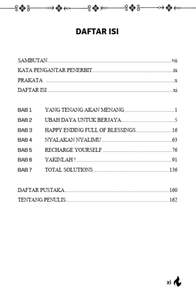 Berikut Daftar Isi Buku Motivasi berjudul Buku Tenang Jiwa, Semangat Menyala “Recharge the Spirit”, diantaranya: