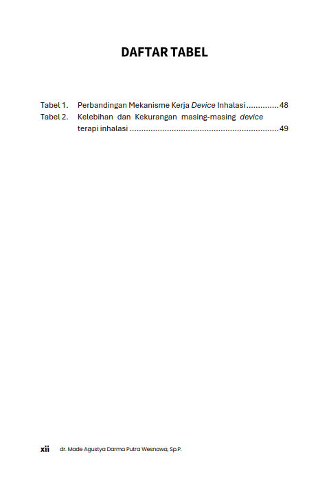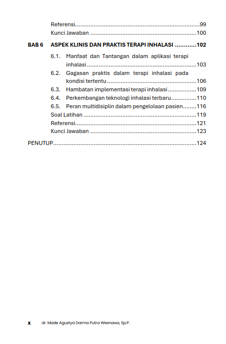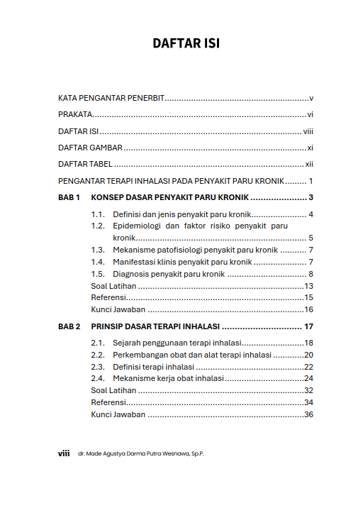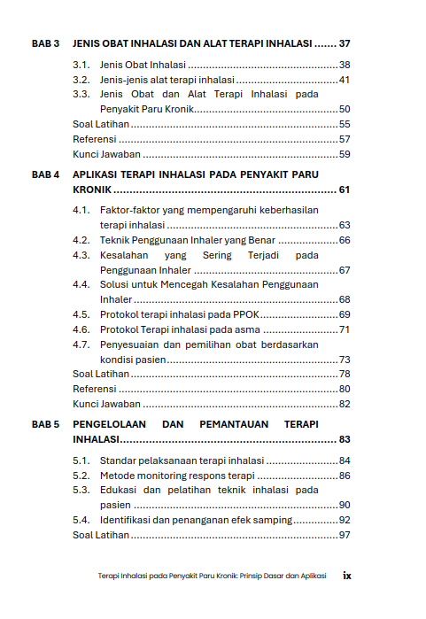 Berikut Daftar Isi Buku Kedokteran yang berjudul Buku Terapi Inhalasi Pada Penyakit Paru Kronik: Prinsip Dasar Dan Aplikasi, diantaranya: