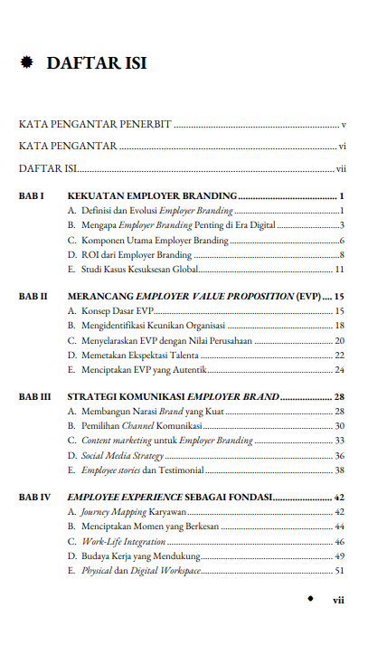 Berikut Daftar Isi Buku Manajemen yang berjudul Buku The Power Of Employer Branding, diantaranya: