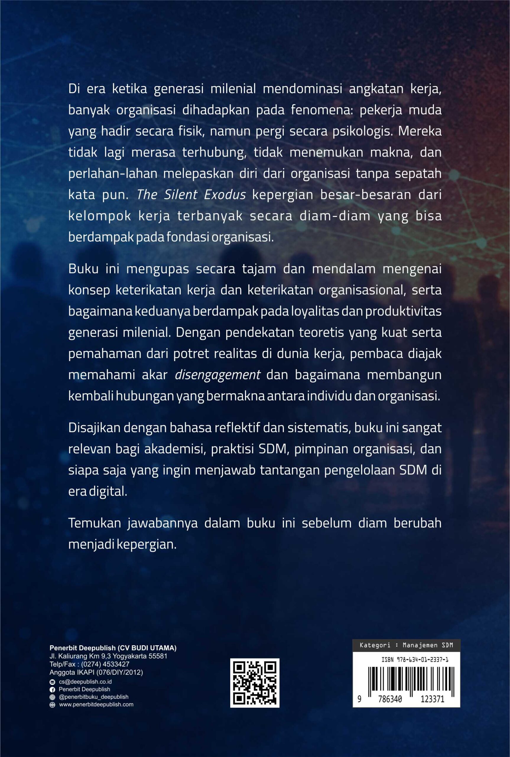 Buku The Silent Exodus: Memaknai Organizational Engagement Generasi Milenial diterbitkan oleh Penerbit Buku Pendidikan Deepublish.