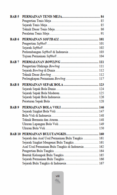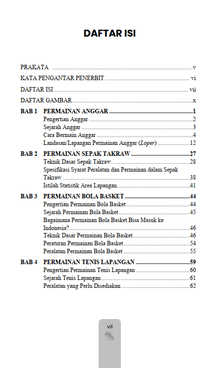 Berikut Daftar Isi Buku Olahraga yang berjudul Buku Transformasi & Transtelektual Mekanika 10 Cabang Olahraga (Dimensi Pemikiran dan Aksi Variatif: Core Concepts, History of Sport and Terminology), diantaranya: