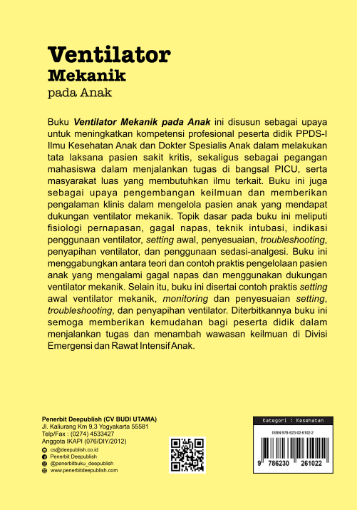 Buku Ventilator Mekanik pada Anak ini diterbitkan oleh Penerbit Buku Pendidikan Deepublish.