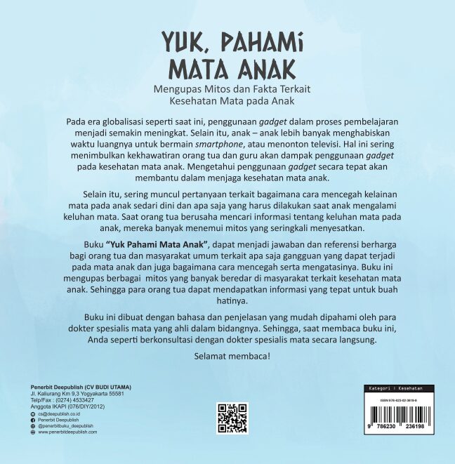 Buku Yuk, Pahami Mata Anak Mengupas Mitos dan Fakta Terkait Kesehatan Mata Pada Anak ini diterbitkan oleh Penerbit Buku Pendidikan Deepublish.