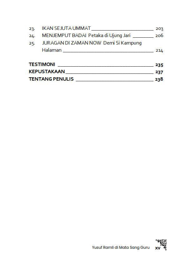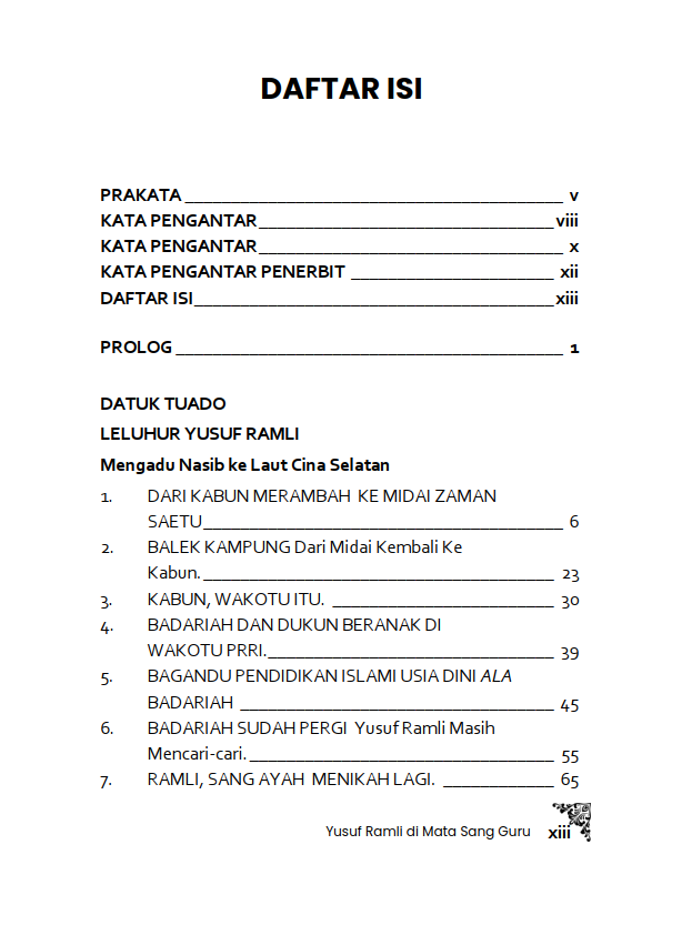 Berikut Daftar Isi Buku Biografi yang berjudul Buku Yusuf Ramli di Mata Sang Guru, diantaranya: