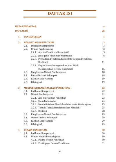 Akhir-akhir ini muncul banyak buku metodologi penelitian. Kehadiran berbagai literatur ilmiah tentang penelitian seharusnya mempermudah mahasiswa mengerjakan skripsinya. Berbagai kajian tentang penelitian kuantitatif dapat diakses dengan mudah. Jurnal-jurnal online yang terpercaya juga sudah banyak menyajikan hasil-hasil penelitian kuantitatif. Beragam literatur tersebut sejatinya secara gamblang memberi tahu kepada kita bagaimana desain sebuah karya penelitian kuantitatif. Mahasiswa tinggal mengabstraksi gagasan-gagasan yang dikemukakan oleh para peneliti, mengikuti pola penulisan yang berlaku umum atau sesuai dengan pedoman yang ditetapkan oleh institusinya. Persoalan lain yang dihadapi oleh mahasiswa adalah dari mana harus memulai penelitian, bagaimana mencari dan menemukan masalah penelitian, variabel-variabel penelitian apa yang akan dijadikan sebagai topik penelitian, apakah ada literatur-literatur yang berkaitan dengan variabel yang akan digarap, bagaimana menyusun kuesioner penelitian, dan masalah-masalah teknis lainnya. Atas alasan inilah buku ajar ini dibuat dengan tujuan utama membantu mahasiswa mengerti tentang apa yang akan ditulis.
