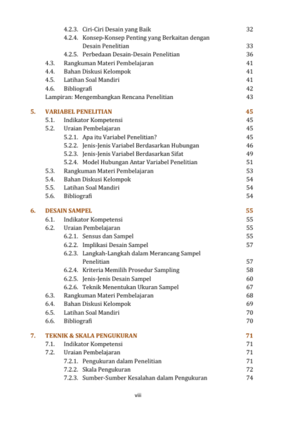 Oleh karena itu, apa yang disajikan dalam buku ini diusahakan sesuai dengan konsep-konsep metodologi penelitian dan dibatasi pada penelitian kuantitatif. Konsep-konsep dasar metodologi penelitian kuantitatif meliputi jenis penelitian kuantitatif yang dipakai, memilih dan mendefinisikan masalah penelitian, mendesain penelitian, memilih dan merumuskan model hubungan antar variabel, dan hal-hal lainnya akan disajikan di dalam buku ajar ini. Buku ajar ini dibuat untuk kepentingan penulisan skripsi bagi mahasiswa Program Studi Manajemen Sekolah Tinggi Ilmu Ekonomi Bentara Persada, Batam. Penulisan skripsi tidak hanya sekadar memenuhi tugas akhir, tetapi lebih dari itu mahasiswa dapat belajar dan memahami bahwa sebuah keputusan harus didasari pada data dan fakta. Usulan perbaikan harus berangkat dari hasil analisis atas fakta yang terjadi, bukan berdasarkan asumsi atau karena ada kepentingan pribadi. Melalui kerja penelitian mahasiswa memahami dan belajar bagaimana cara memecahkan sebuah masalah secara ilmiah.
