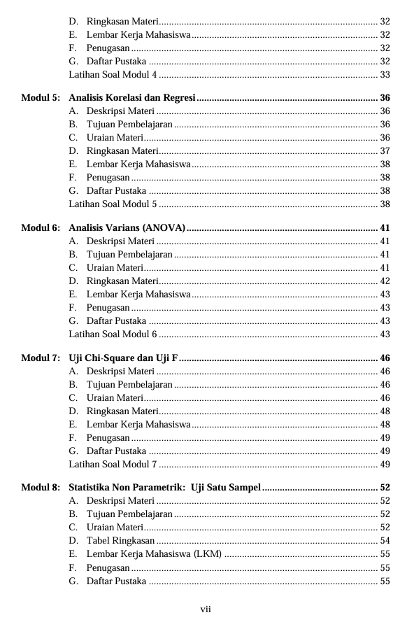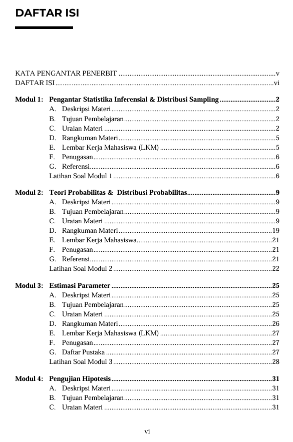Berikut Daftar Isi Buku Statistika yang berjudul Modul Ajar Mata Kuliah Statistika Inferensial Berbasis Literasi Statistis, diantaranya: