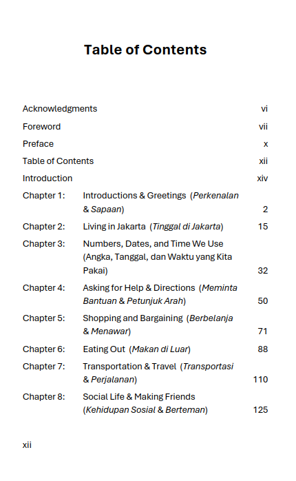 Not only does this book teach language, it also introduces cultural values such as politeness in speech, the importance of formal greetings such as Bapak and Ibu, and the social etiquette that applies in Indonesia. With its light and practical writing style, this book serves as a bridge between language and culture to help foreign readers enjoy a warmer and more meaningful experience of life in Indonesia.