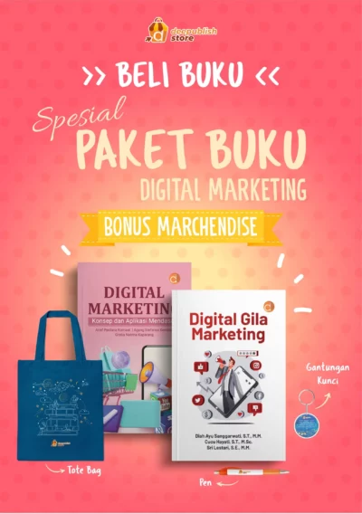 Buku Digital Gila Marketing Buku Manajemen ini yang berjudul Buku Digital Gila Marketing karya Diah Ayu Sanggarwati, S.T., M.M, dkk. Buku ini hadir untuk membimbing Anda melalui hutan teknologi yang terus berkembang serta memberikan pencerahan tentang strategi pemasaran yang dapat Anda manfaatkan dalam era digital ini. Baca setiap bab dengan saksama, ikuti latihan-latihan praktis, dan jadikan buku ini sebagai acuan pribadi Anda dalam mencapai keunggulan pemasaran digital. Hadirnya buku ini diharapkan tidak hanya memberi Anda pengetahuan, tetapi juga memotivasi Anda untuk menjelajahi dan menciptakan inovasi dalam dunia yang terus berubah ini. Digital marketing merupakan satu di antara media yang digemari khalayak saat ini karena dapat membantu kegiatan hariannya. Munculnya internet tentunya mengubah dunia pemasaran. Perusahaan memasarkan produk mereka melalui papan reklame, media cetak, radio, dan televisi pada tahap awal digital marketing. Pada awalnya, internet dan web membuat mendapatkan informasi lebih mudah, tetapi itu masih merupakan sumber informasi tunggal. Setelah itu, beberapa bisnis mulai mempertimbangkan dengan hati-hati penggunaan platform online sebagai cara untuk meningkatkan penjualan mereka.
