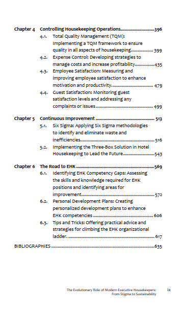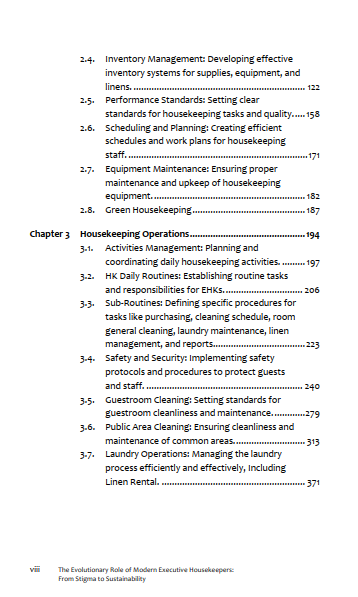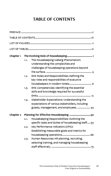 Table contens Book of The Evolutionary Role Of Modern Executive Housekeepers: From Stigma To Sustainability: