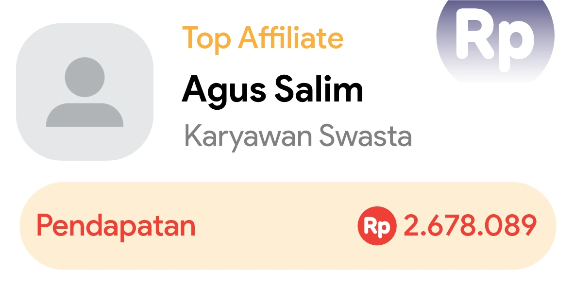 Anda akan mendapatkan komisi di setiap penjualan yang berhasil dilakukan oleh referensi Anda.